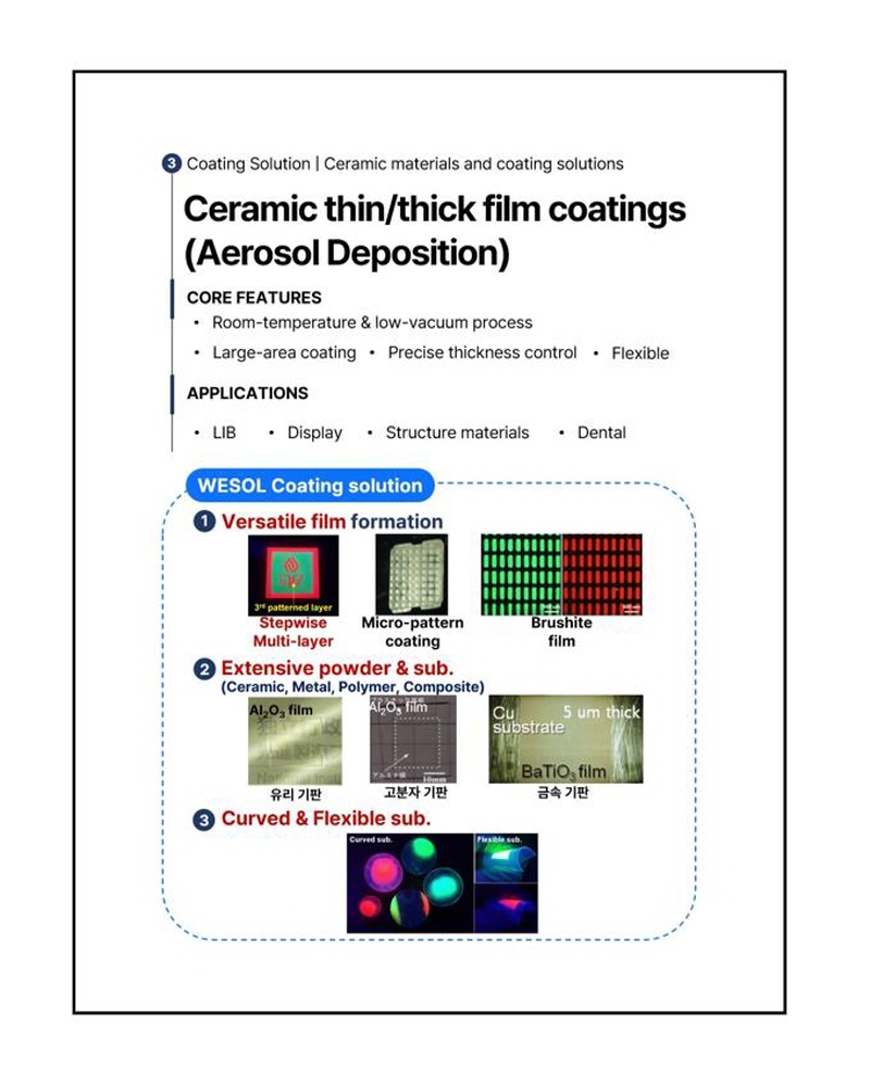 COMPANY About us History CEO Greeting Business Partners PRODUCT Solid material solution Coating solution SERVICE Material service Coating service CONTACT Notice Recruit Location Contact us KR EN 닫기 카테고리 상품 검색 검색어 입력박스 Search PRODUCT HOME PRODUCT Coating solution Solid material solution Coating solution Coating solution Home > Coating solution PRODUCT Ceramic thin/thick film coatings info If you have any orders or additional inquiries, please feel free to contact us via the email below or through the “Contact Us” page, and we will assist you promptly. detail_img List