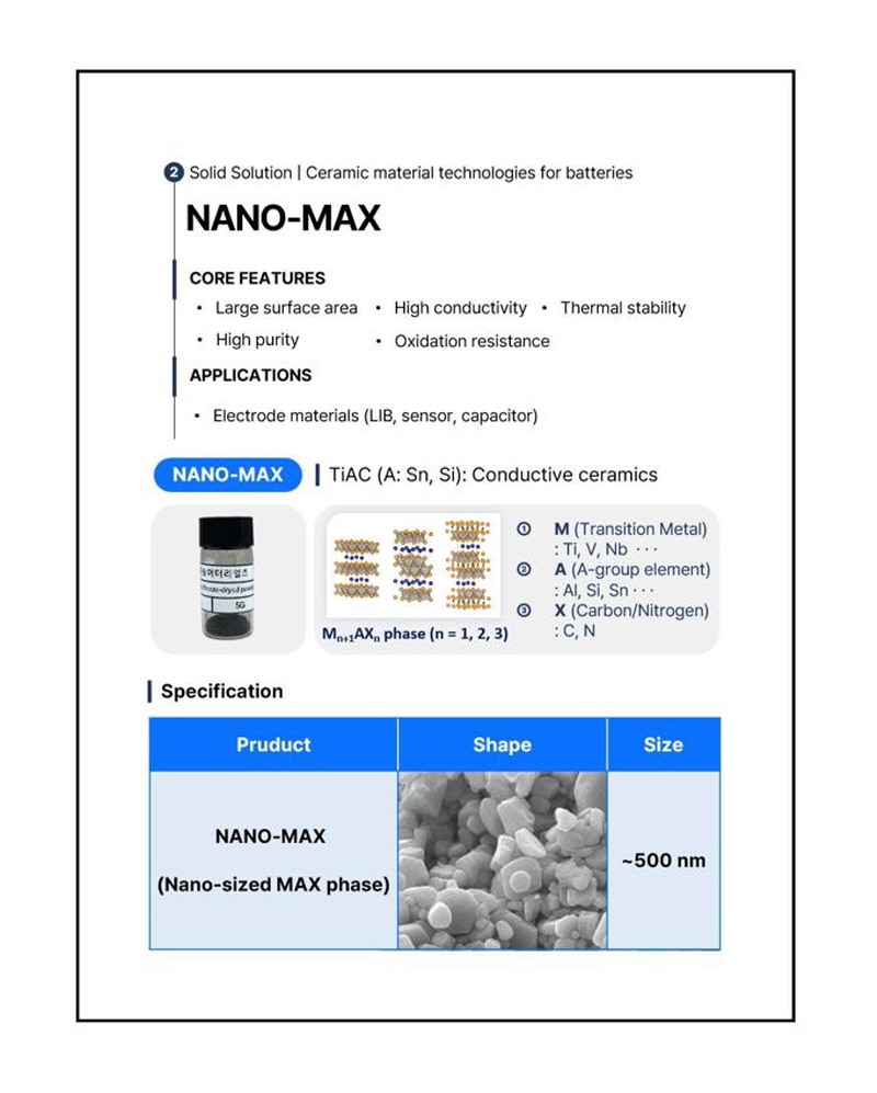 COMPANY About us History CEO Greeting Business Partners PRODUCT Solid material solution Coating solution SERVICE Material service Coating service CONTACT Notice Recruit Location Contact us KR EN 닫기 카테고리 상품 검색 검색어 입력박스 Search PRODUCT HOME PRODUCT Solid material solution Solid material solution Coating solution Solid material solution Home > Solid material solution PRODUCT NANO-MAX info If you have any orders or additional inquiries, please feel free to contact us via the email below or through the “Contact Us” page, and we will assist you promptly. detail_img List