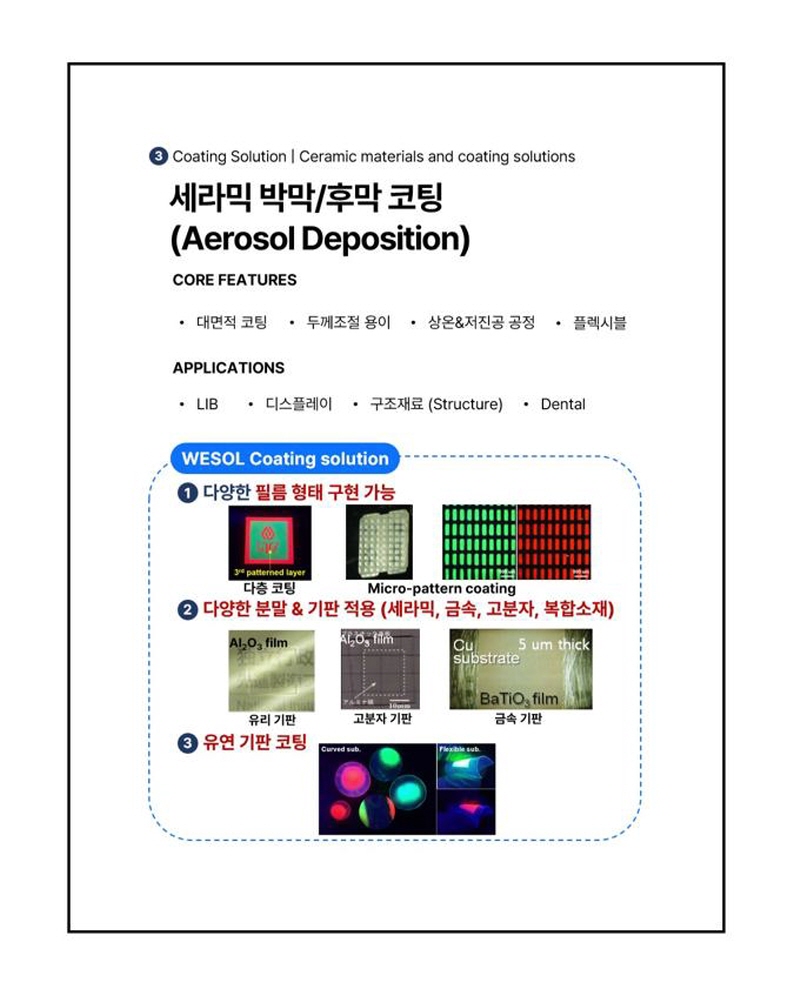 COMPANY About us History CEO Greeting Business Partners PRODUCT Solid material solution Coating solution SERVICE Material service Coating service CONTACT Notice Recruit Location Contact us KR EN 닫기 카테고리 상품 검색 검색어 입력박스 검색 PRODUCT HOME PRODUCT Coating solution Solid material solution Coating solution Coating solution Home > Coating solution PRODUCT 세라믹 박막/후막 코팅 내용 주문 및 기타 문의사항이 있으시면 하단 메일 또는 ‘Contact Us’를 통해 연락 주시면 빠르게 안내 도와드리겠습니다. 상세 이미지 목록