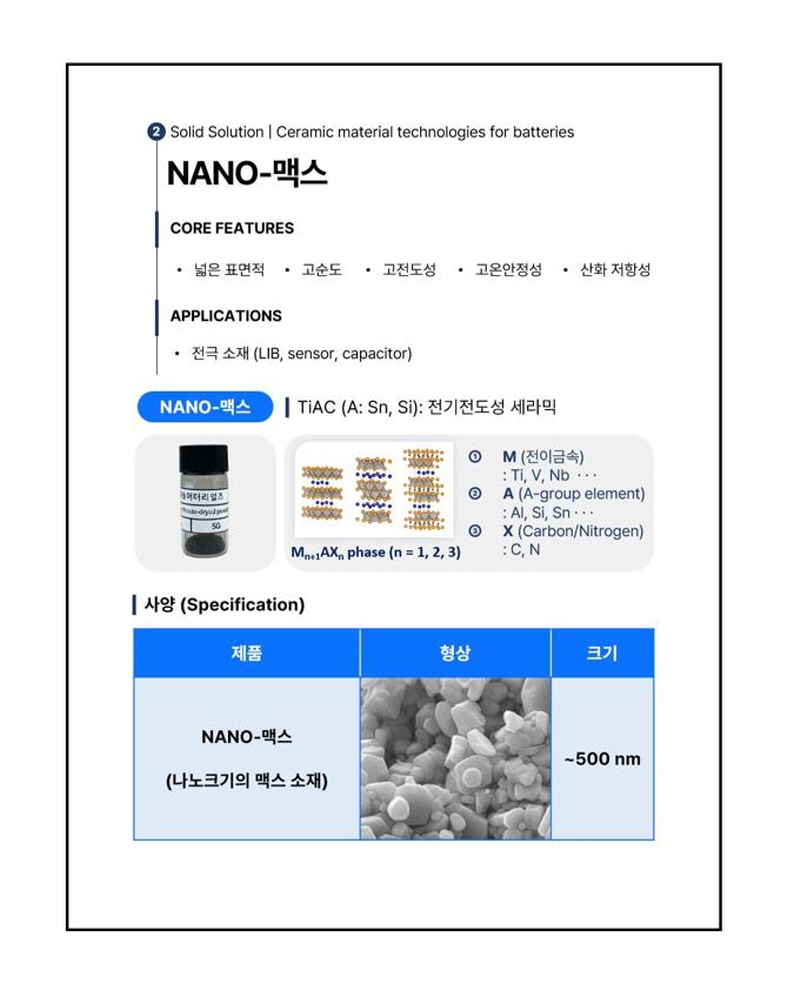 COMPANY About us History CEO Greeting Business Partners PRODUCT Solid material solution Coating solution SERVICE Material service Coating service CONTACT Notice Recruit Location Contact us KR EN 닫기 카테고리 상품 검색 검색어 입력박스 검색 PRODUCT HOME PRODUCT Solid material solution Solid material solution Coating solution Solid material solution Home > Solid material solution PRODUCT NANO-맥스 내용 주문 및 기타 문의사항이 있으시면 하단 메일 또는 ‘Contact us’를 통해 연락 주시면 빠르게 안내 도와드리겠습니다. 상세 이미지 목록